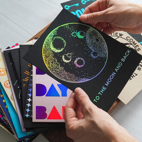 To accurately showcase the brilliance of the foil in these greeting cards, the set design and photography had to be uniquely crafted. I experimented with both natural and artificial light sources to illuminate the foil. Head on shooting resulted in bland images, so innovative angles, textures, and spatial depth were utilized. The results were unique and totally in line with the brand’s aesthetic.